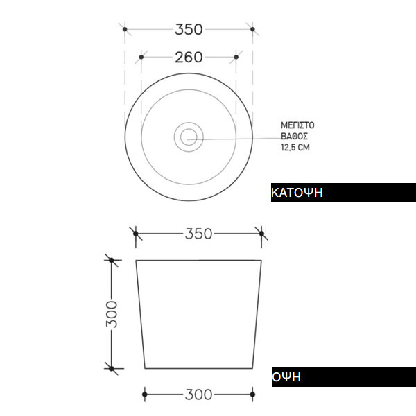 • Διαστάσεις (Μ x Π x Υ): Ø 35 x 30 cm