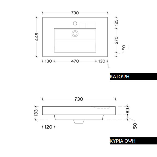 • Νιπτήρας ένθετος επίπλου μπάνιου