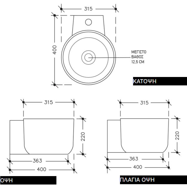 • Διαστάσεις (Μ x Π x Υ): Ø 31,5 x 22 cm