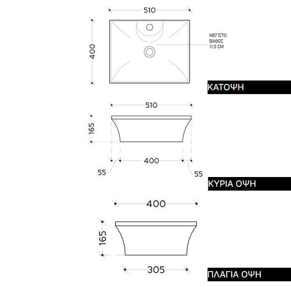• Διαστάσεις (Μ x Π x Υ): 51 Χ 40 Χ 11,5 / 16,5 cm