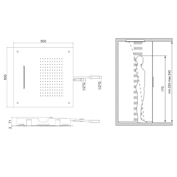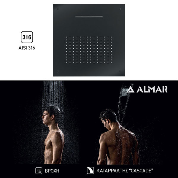 Almar E044109-411 Square Temptation XL Black Brushed PVD Κεφαλή Οροφής