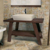 • Πάγκος δαπέδου από φυσικό ξύλο μασίφ έλατο, με επιφάνεια πολύ κοντά στη φυσική του μορφή, με ένα ράφι