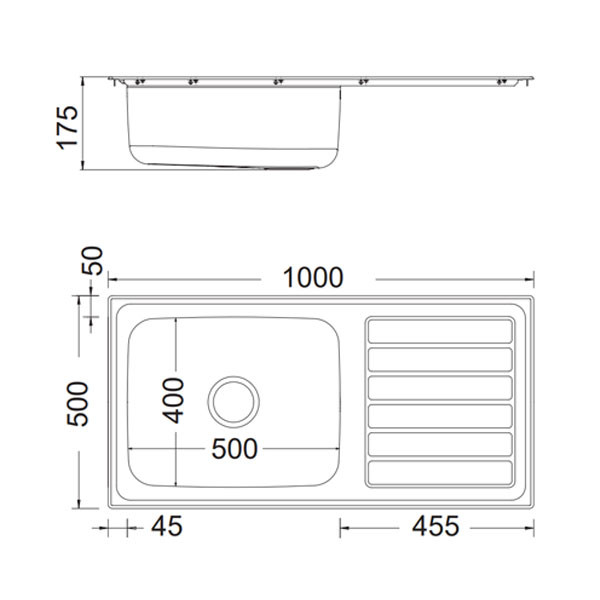 • Ένθετος ανοξείδωτος νεροχύτης αθόρυβος, λείος