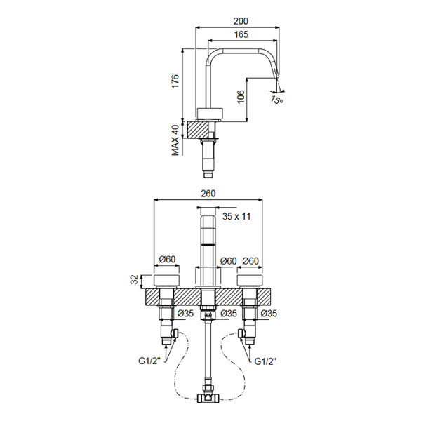 • Μπαταρία νιπτήρος σε χρώμα gold brushed