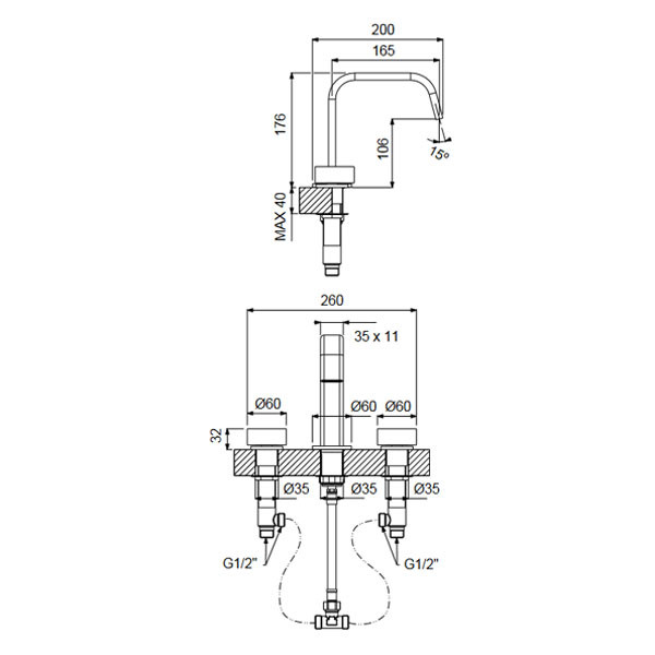 Armando Vicario Halo 515043-400 Black Matt Νιπτήρος Τριών Οπών