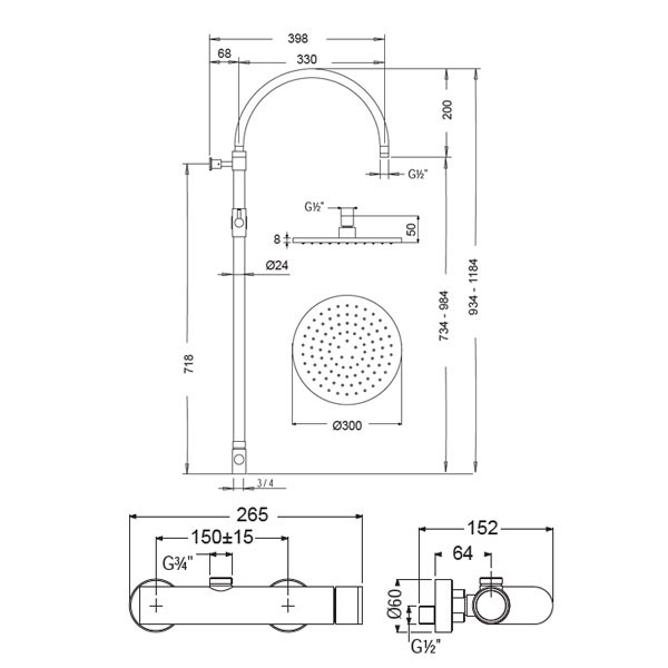 • Ανακλινόμενο ντους οροφής (Ø 25 cm)