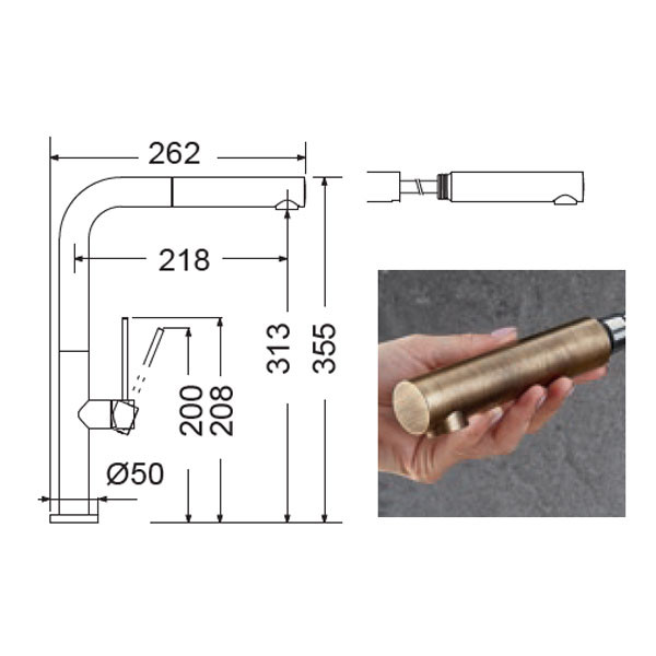 • Μπαταρία νεροχύτου ψηλή, τύπου "Γάμα" σε αντικέ ορείχαλκο