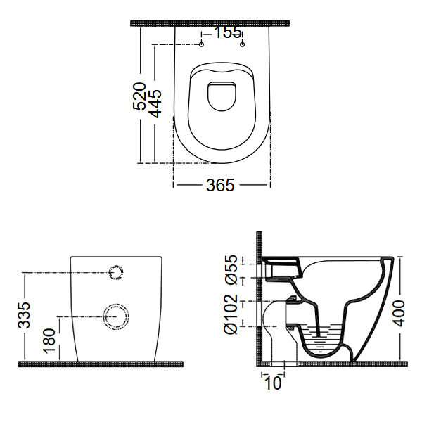 • Διατίθεται μόνο με πίσω σιφώνι και με προσθήκη γωνιακού εξαρτήματος για κάτω σιφώνι (κέντρο 10 cm)