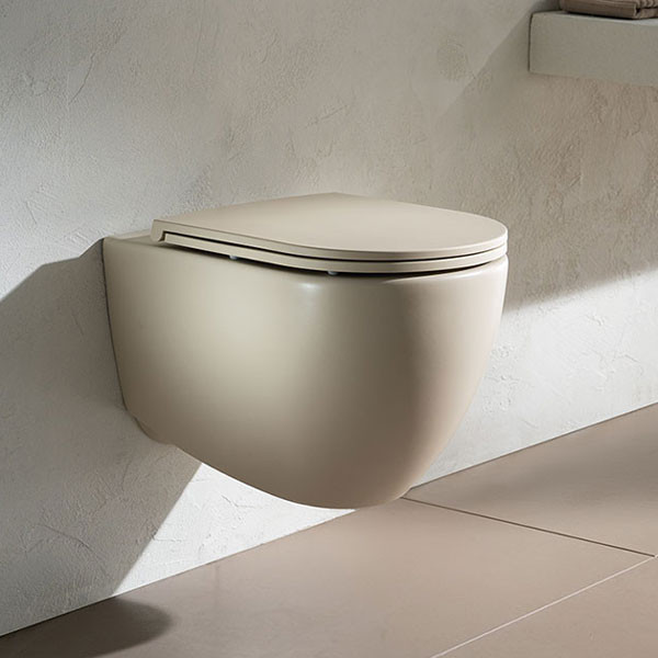 • Λεκάνη κρεμαστή κομπλέ με υδροδυναμική έκπλυση σε ivory matt χρώμα
