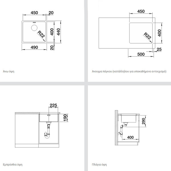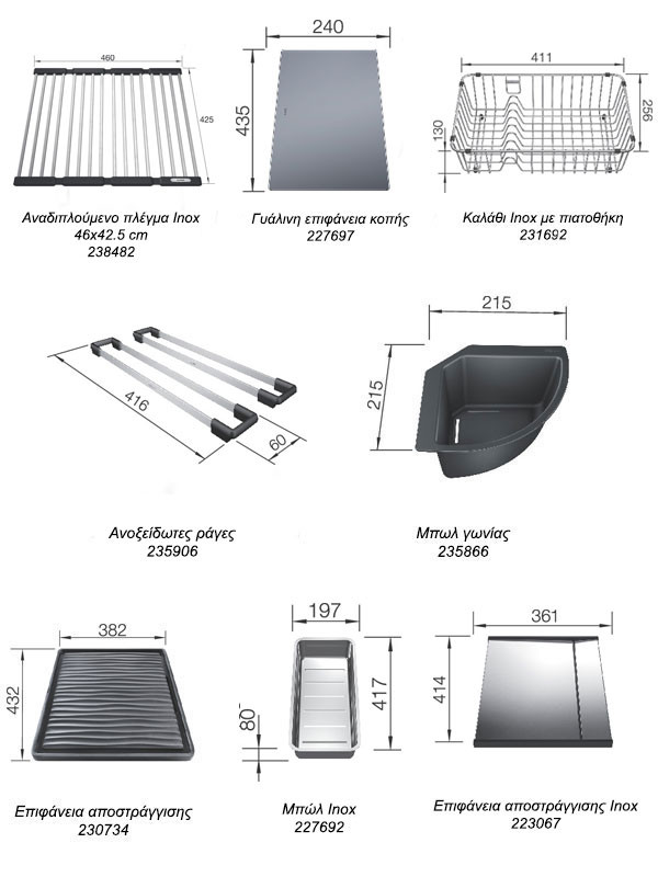 • Για το νεροχύτη Blanco Andano 450-U διατίθενται προαιρετικά αξεσουάρ με επιλογή