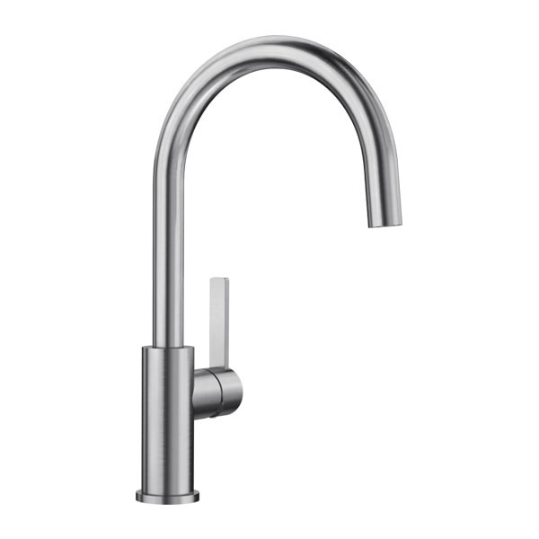 • Μπαταρία νεροχύτη τύπου "Καμπύλη" από συμπαγές ανοξείδωτο ατσάλι, με brushed φινίρισμα