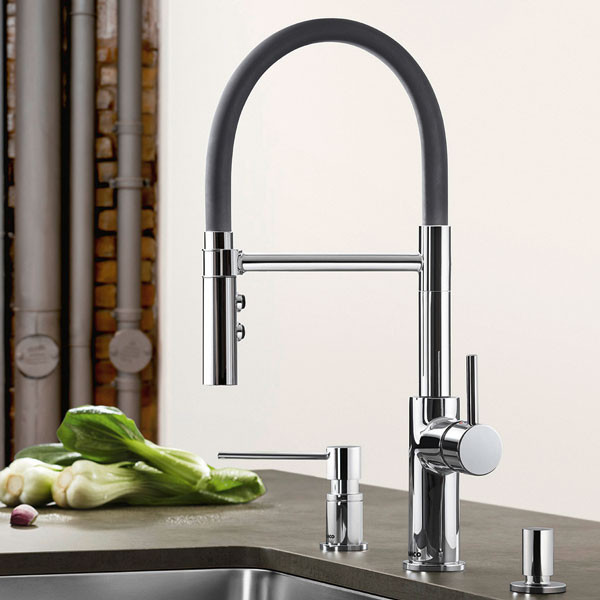 • Αποσπώμενο ρουξούνι περιστρεφόμενο 360 μοιρών, με ενσωματωμένη λειτουργία διακοπής της ροής: εύκολη εναλλαγή από απλή ροή σε ισχυρό ψεκασμό ξεπλύματος