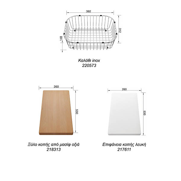 • Για το νεροχύτη Blanco Dinas 8 S διατίθενται προαιρετικά αξεσουάρ με επιλογή