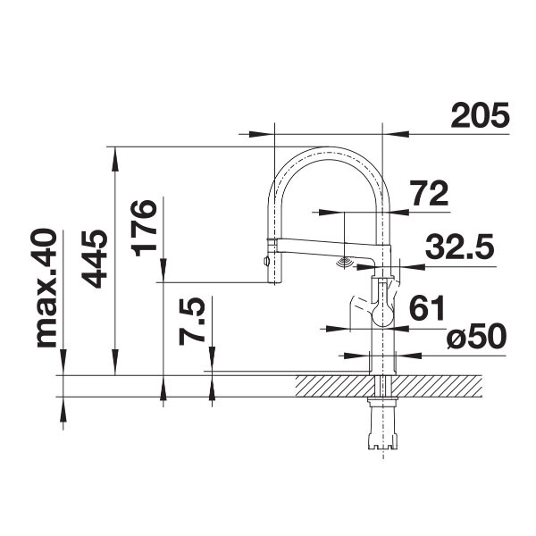 • Αποσπώμενο ρουξούνι περιστρεφόμενο 140 μοιρών, με διπλό φίλτρο εκροής: εύκολη εναλλαγή από απλή ροή σε ισχυρό ψεκασμό ξεπλύματος