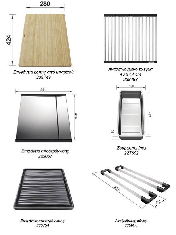 • Για το νεροχύτη Blanco Solis 500-IF/A διατίθενται προαιρετικά αξεσουάρ με επιλογή