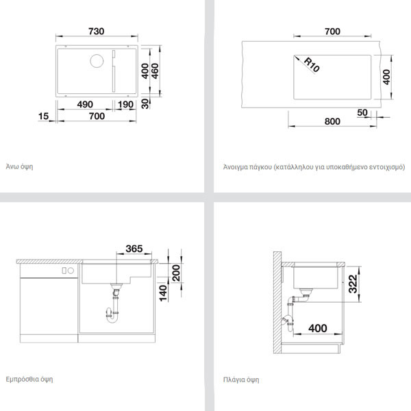 • Υποκαθήμενος νεροχύτης γρανίτης, κύρια γούρνα από αριστερά