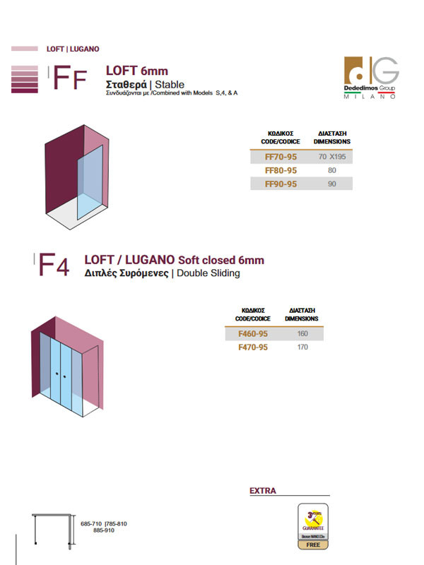 • Διατίθεται με κρύσταλλα tempered 6 mm διάφανα με νανο-προστασία Bronze 22 για ευκολότερο καθαρισμό, με εγγύηση 3 έτη