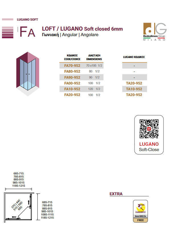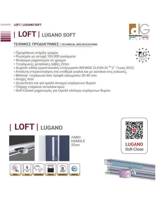 • Διατίθεται με κρύσταλλα tempered 6 mm διάφανα με νανο-προστασία Bronze 22 για ευκολότερο καθαρισμό, με εγγύηση 3 έτη
