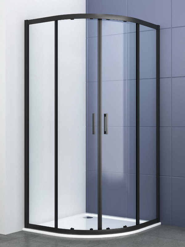 • Καμπίνα ημικυκλικής ντουζιέρας με δύο σταθερά φύλλα και δύο συρόμενες πόρτες, σε μαύρο