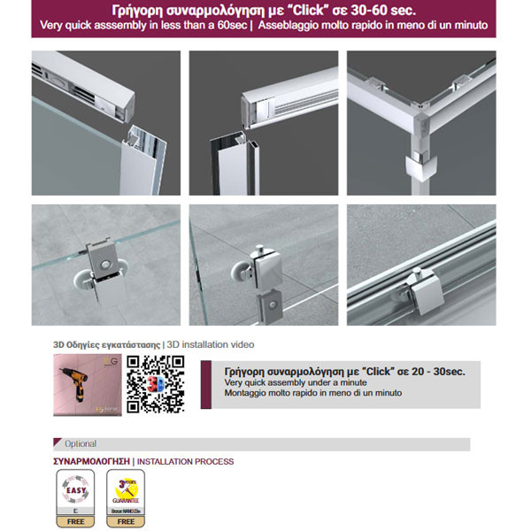 • Γρήγορη συναρμολόγηση με “Click” σε 20 - 30sec