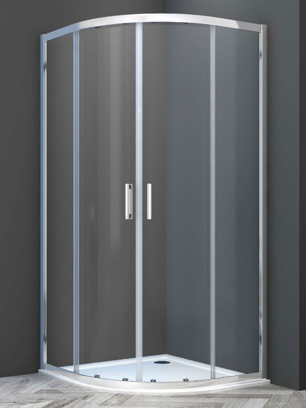 • Καμπίνα ημικυκλικής ντουζιέρας με δύο σταθερά φύλλα και δύο συρόμενες πόρτες, σε χρώμιο