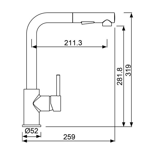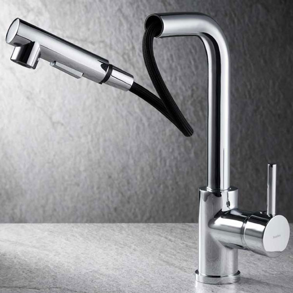 • Ρουξούνι περιστρεφόμενο με συρόμενο ντους 2 λειτουργιών και άθραυστο σπιράλ