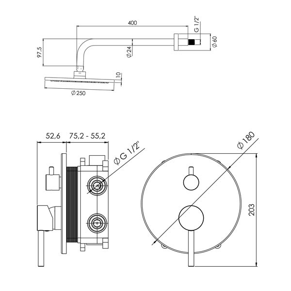 • Ντους οροφής Inox Ø 25 cm
