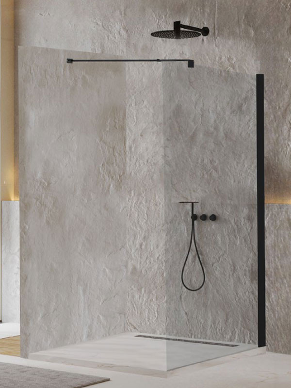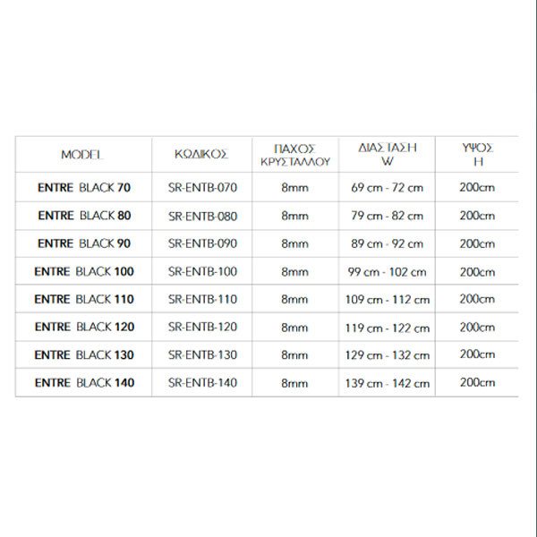 • Διάφανο κρύσταλλο ασφαλείας 8 mm με νανοτεχνολογία, μαύρο ματ προφίλ και βραχίονας διαγώνιας ή κάθετης στήριξης με προβολή 72-120 cm (μειώνεται με κοπή του βραχίονα)