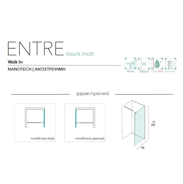 • Μονόπτυχο παραβάν ντουζιέρας αντιστρεφόμενο αποτελούμενο από ένα φύλλο