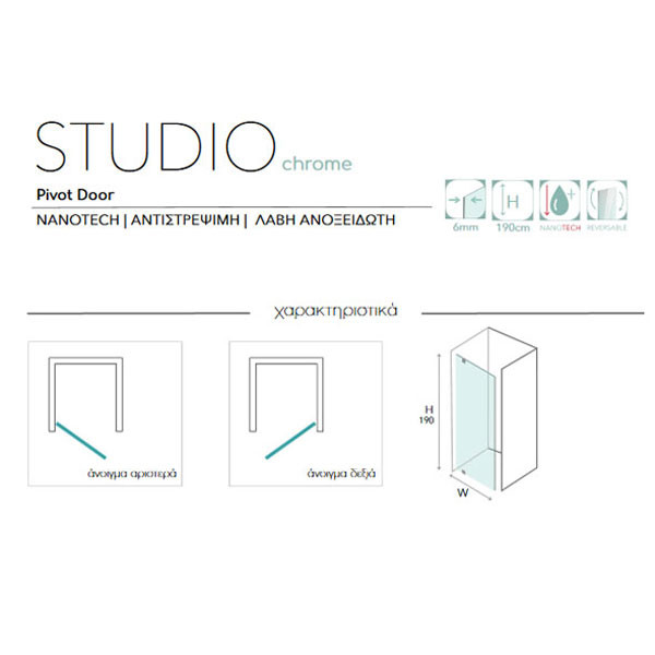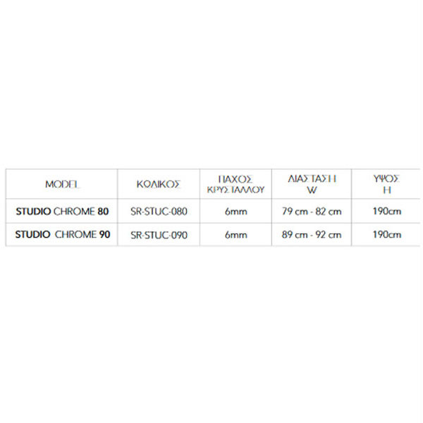 • Η καμπίνα Studio Chrome προσφέρεται και σε διαστάσεις 79 έως 82 Χ 190 cm με επιλογή