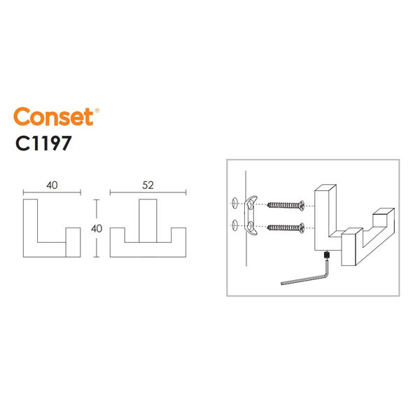 Conset C1197 Κρεμάστρα Τοίχου Διπλή Ματ Νίκελ