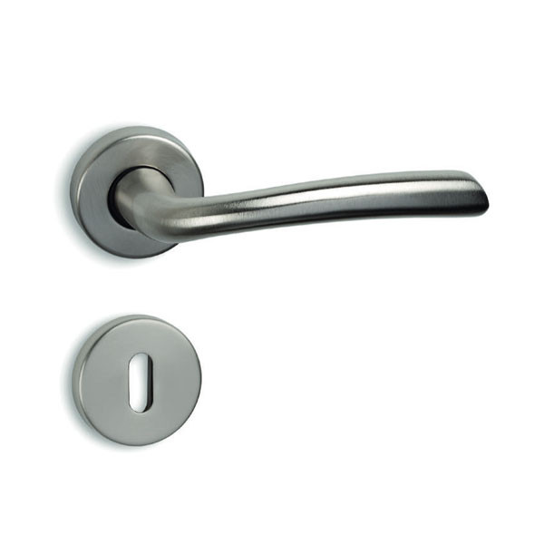 • Πόμολο φιξ εξωθύρας χρώματος ματ νίκελ σε ροζέτα για κλειδαριά ασφαλείας