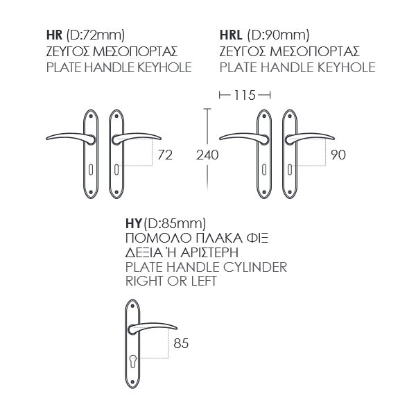 • Στο σχέδιο με πλάκα θα πρέπει να μας ενημερώσετε για τα κέντρα 7,5 ή 9,0 cm (κέντρο οπής πομόλου με κέντρο οπής κλειδαριάς)