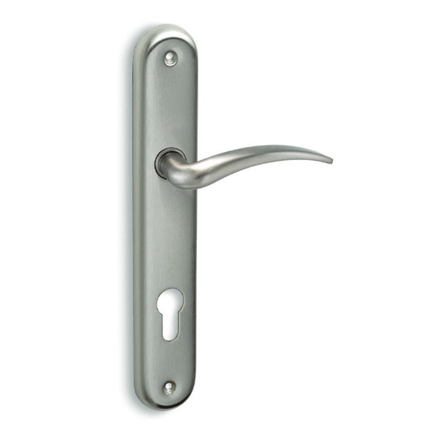 • Πόμολο μεσόπορτας χρώματος ματ νίκελ σε πλάκα