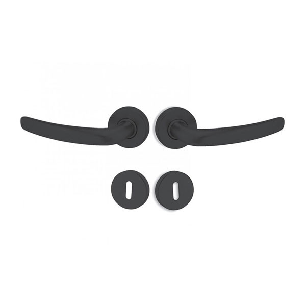 • Πόμολο μεσόπορτας χρώματος ματ μαύρο σε ροζέτα