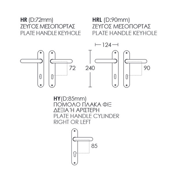 • Στο σχέδιο με πλάκα θα πρέπει να μας ενημερώσετε για τα κέντρα 7,5 ή 9,0 cm (κέντρο οπής πομόλου με κέντρο οπής κλειδαριάς)