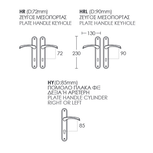 • Το προϊόν διατίθεται σε αριστερό ή δεξιό φιξ με επιλογή (π.χ από την εσωτερική πλευρά της πόρτας όταν οι μεντεσέδες είναι από την αριστερή πλευρά, η επιλογή του φιξ θα είναι αριστερό)