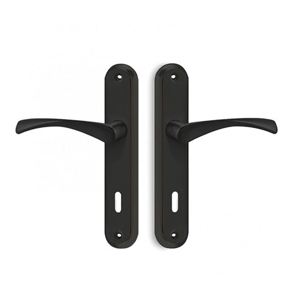 • Πόμολο φιξ εξωθύρας χρώματος μαύρο ματ σε πλάκα για κλειδαριά ασφαλείας