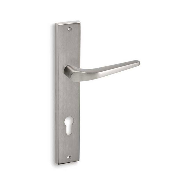 • Πόμολο φιξ εξωθύρας σε σχέδιο με ροζέτα ή πλάκα για κλειδαριά ασφαλείας, χρώματος ματ νίκελ