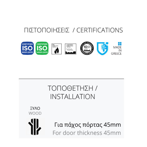 • Κατάλληλο για εξωτερικές και εσωτερικές πόρτες