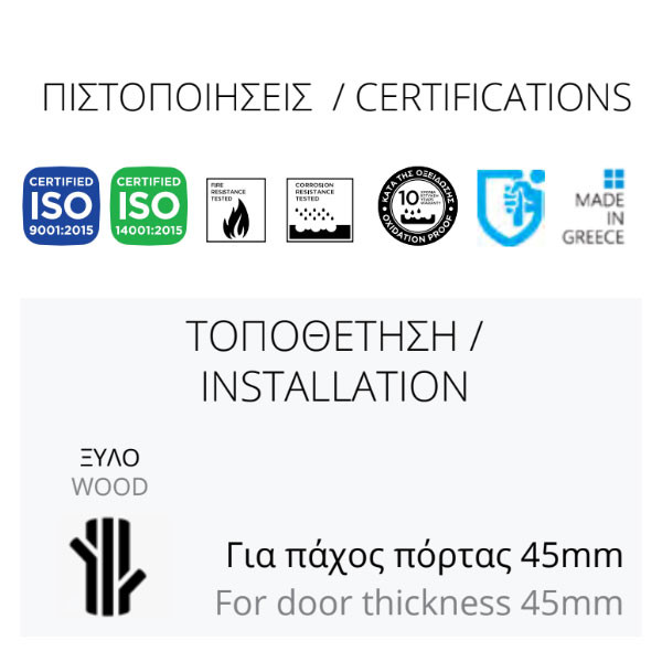• Κατάλληλο για εξωτερικές και εσωτερικές πόρτες