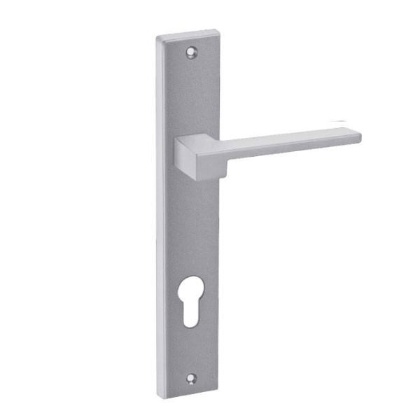 • Πόμολο φιξ εξωθύρας σε σχέδιο με ροζέτα ή πλάκα για κλειδαριά ασφαλείας, χρώματος ματ χρώμιο