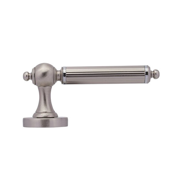 • Πόμολο φιξ εξωθύρας σε σχέδιο με ροζέτα για κλειδαριά ασφαλείας, χρώματος ματ νίκελ / χρώμιο