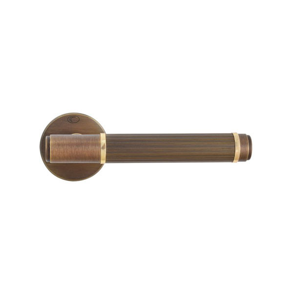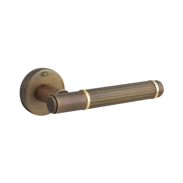 • Πόμολο φιξ εξωθύρας σε σχέδιο με ροζέτα για κλειδαριά ασφαλείας, χρώματος ματ αντικέ / επίχρυσο