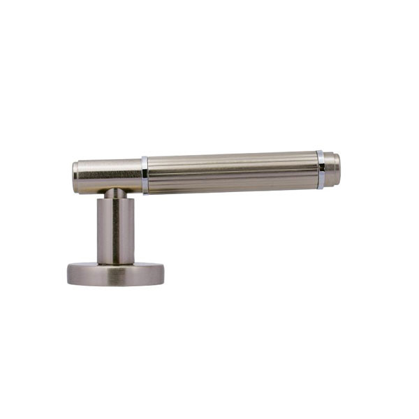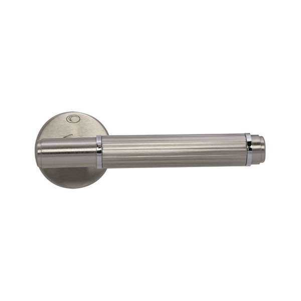 • Πόμολο φιξ εξωθύρας σε σχέδιο με ροζέτα για κλειδαριά ασφαλείας, χρώματος ματ νίκελ / χρώμιο