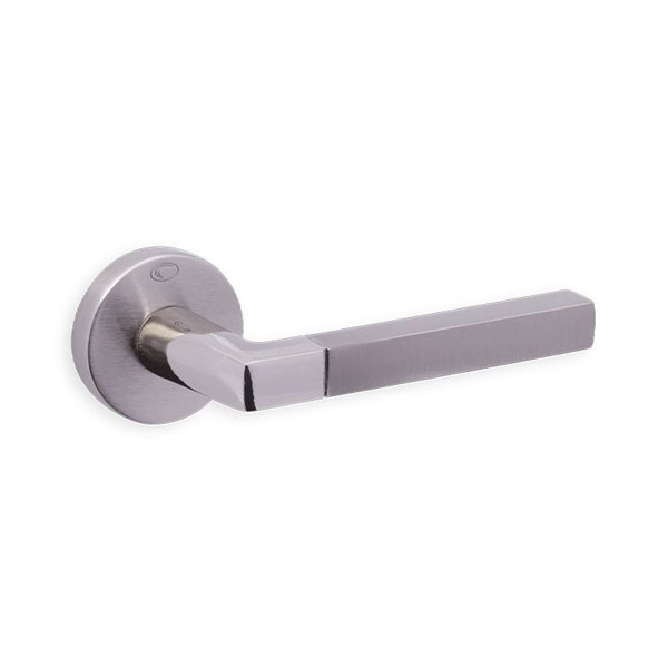 • Πόμολο φιξ εξωθύρας σε σχέδιο με ροζέτα για κλειδαριά ασφαλείας, χρώματος ματ χρώμιο / χρώμιο