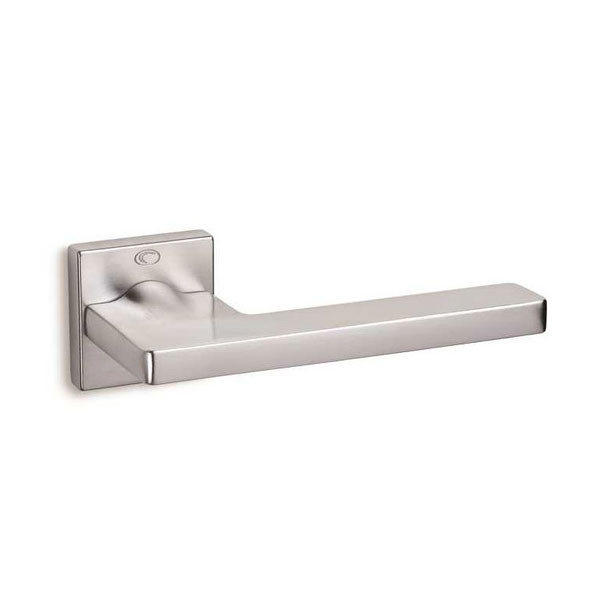 • Πόμολο φιξ εξωθύρας σε σχέδιο με ροζέτα για κλειδαριά ασφαλείας, χρώματος ματ χρώμιο