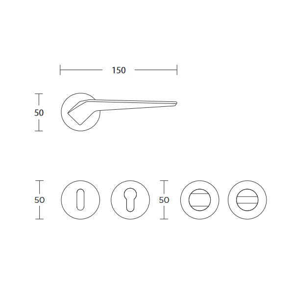 • Πόμολο μεσόπορτας ροζέτα σε χρώμα ματ νίκελ