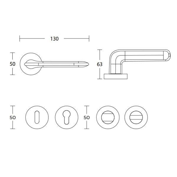 • Πόμολο μεσόπορτας ροζέτα σε χρώμα ματ χρώμιο