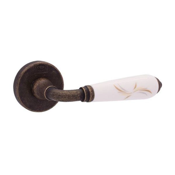• Πόμολο φιξ εξωθύρας σε σχέδιο με ροζέτα για κλειδαριά ασφαλείας, χρώματος αντικέ ορείχαλκος / λευκό στάχυ